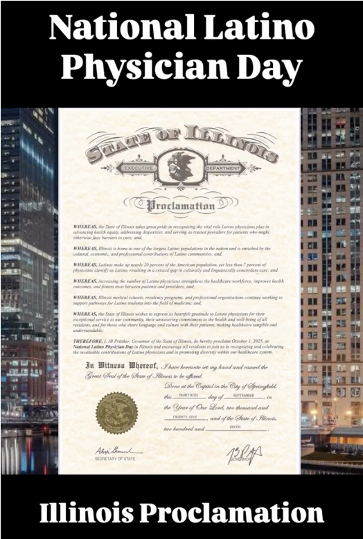 Shoutout to one of our very own Mentorship Leaders and Board Members, Dr. Emma Olivera, for working with Governor Pritzker to officially recognize National Latino Physician Day with a state proclamation!